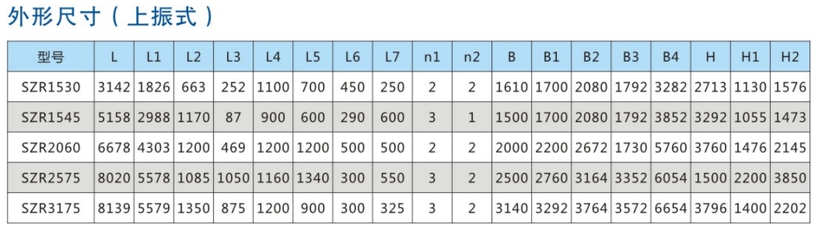 SZR系列熱礦振動篩均為座式安裝。采用雙軸激振器,電機(jī)不參振;由兩臺電機(jī)外拖動激振器作反向自同步旋轉(zhuǎn),使篩體沿直線方向作周期性往復(fù)運(yùn)動,從而達(dá)到篩分目的。